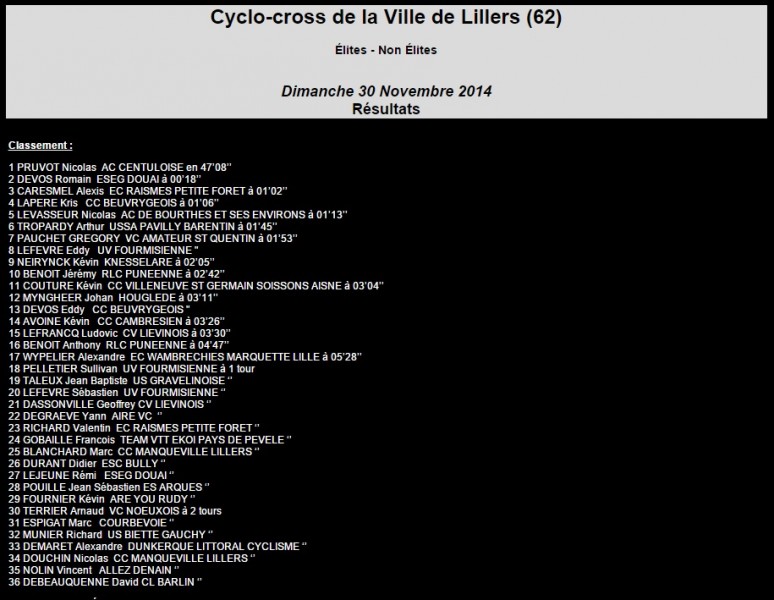 Que des beaux noms dans le classement: 1 PAGNIER David CC VILLENEUVE ST GERMAIN SOISSONS AISNE 49’51 |