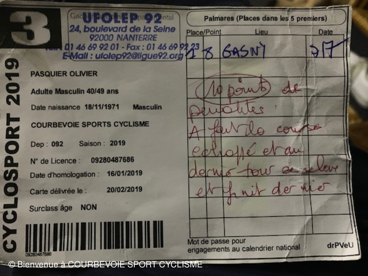 Les podiums de 2019 et quelques évènements.